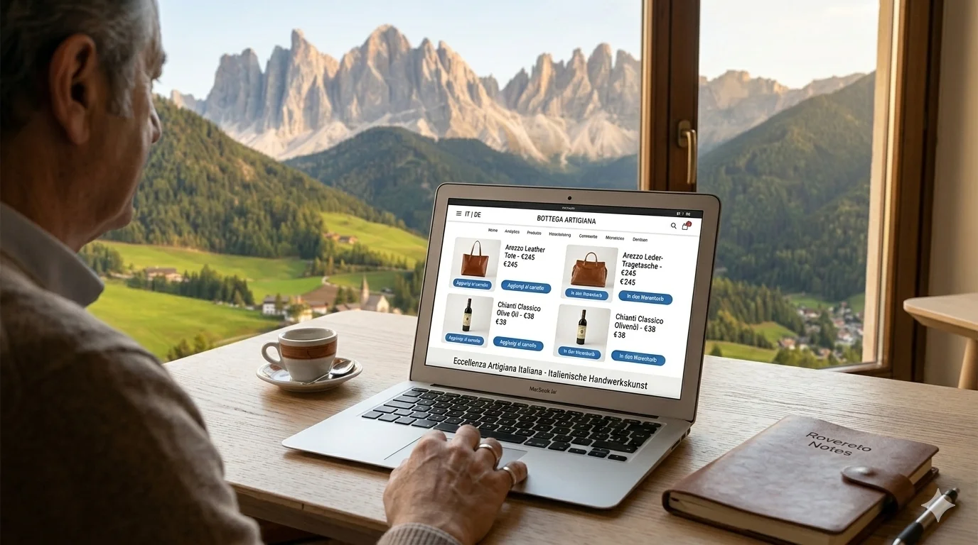 In South Tyrol, this effect is amplified. A customer from Merano who finds an e-commerce in German feels at home. An Austrian tourist who visited your agriturismo and finds your online shop in German trusts you immediately. Language isn't just communication — it's trust, identity, belonging.